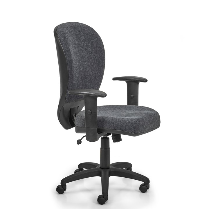Confortable y estilizada. Elegida por profesionales. Tapizado en tela o ecocuero. Espuma inyectada de 50 kg/m3 A-SYNCRO: Mecanismo oscilante de respaldo y asiento con posiciones de ajuste y control de tensión. Regulación neumática del asiento. Base compuesta por nylon y fibra de vidrio de alta resistencia. Ruedas revestidas de material elastómero, muy silenciosa. Opcionales: Apoyabrazos. Base cromada. Base con alma de acero. Ovalina. Basculante.